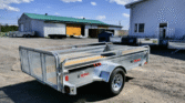 Remorques neuves et d'occasion à vendre de type utilitaire, dompeur, plateforme et cargo fermé. Trailer tout usage pour motoneige, VTT, moto ou voiture.