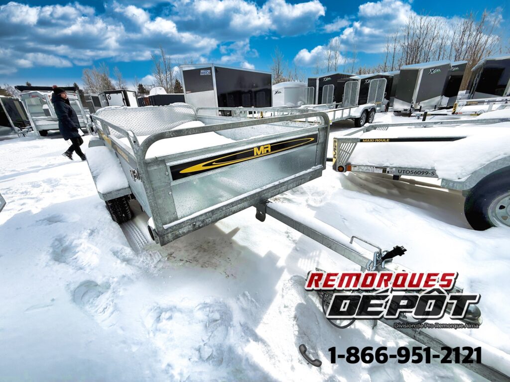 Remorques neuves et d'occasion à vendre de type utilitaire, dompeur, plateforme et cargo fermé. Trailer tout usage pour motoneige, VTT, moto ou voiture.