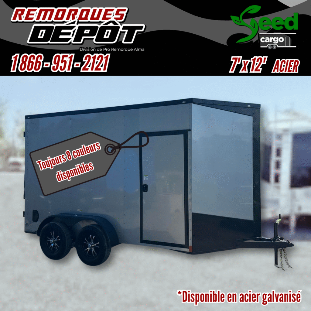 Magnifique remorque fermée de 12 pieds de long (plusieurs couleurs disponibles), intérieur de 7′ de large par 7.3′ de haut!