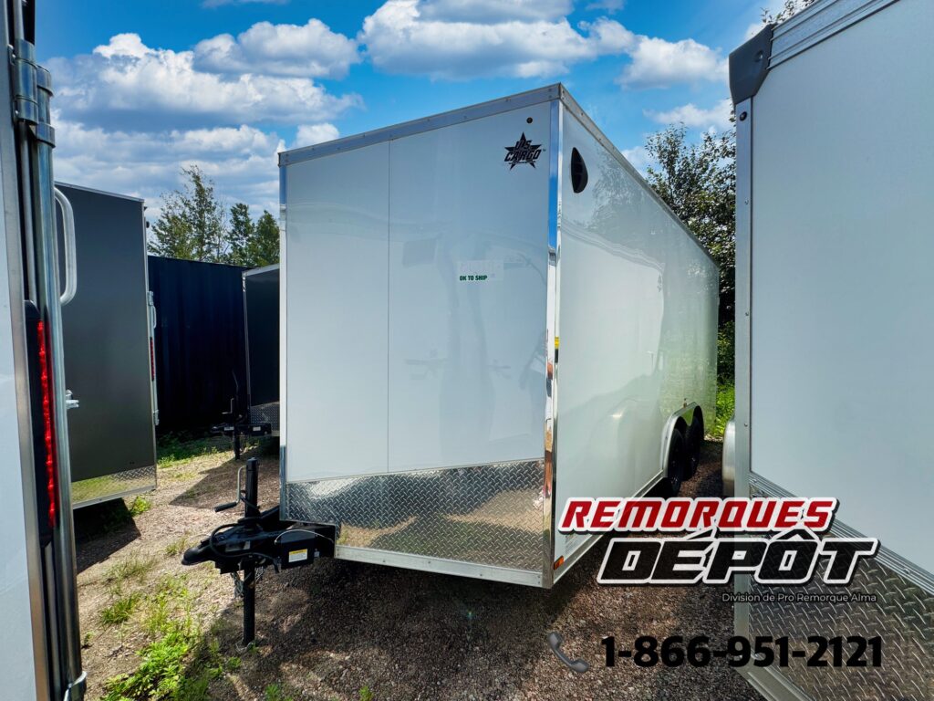 Magnifique remorque fermée de 16 pieds de long (plusieurs couleurs disponibles), intérieur de 8.5′ de large par 7′ de haut!